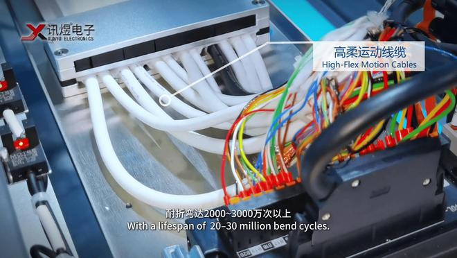 訊煜電子專注于無塵拖鏈、潔凈高柔運動排線、真空線纜、潔凈線纜、高柔運動線纜等產品的研發和生產,為了確保產品的穩定可靠,每款產品都要經過自主研發的耐折彎測試機進行數千萬次高強度耐折彎測試,鑄就高品質、可信賴產品。